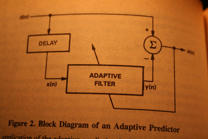 LMS filter. Increasing delay makes the noise reduction more aggressive,