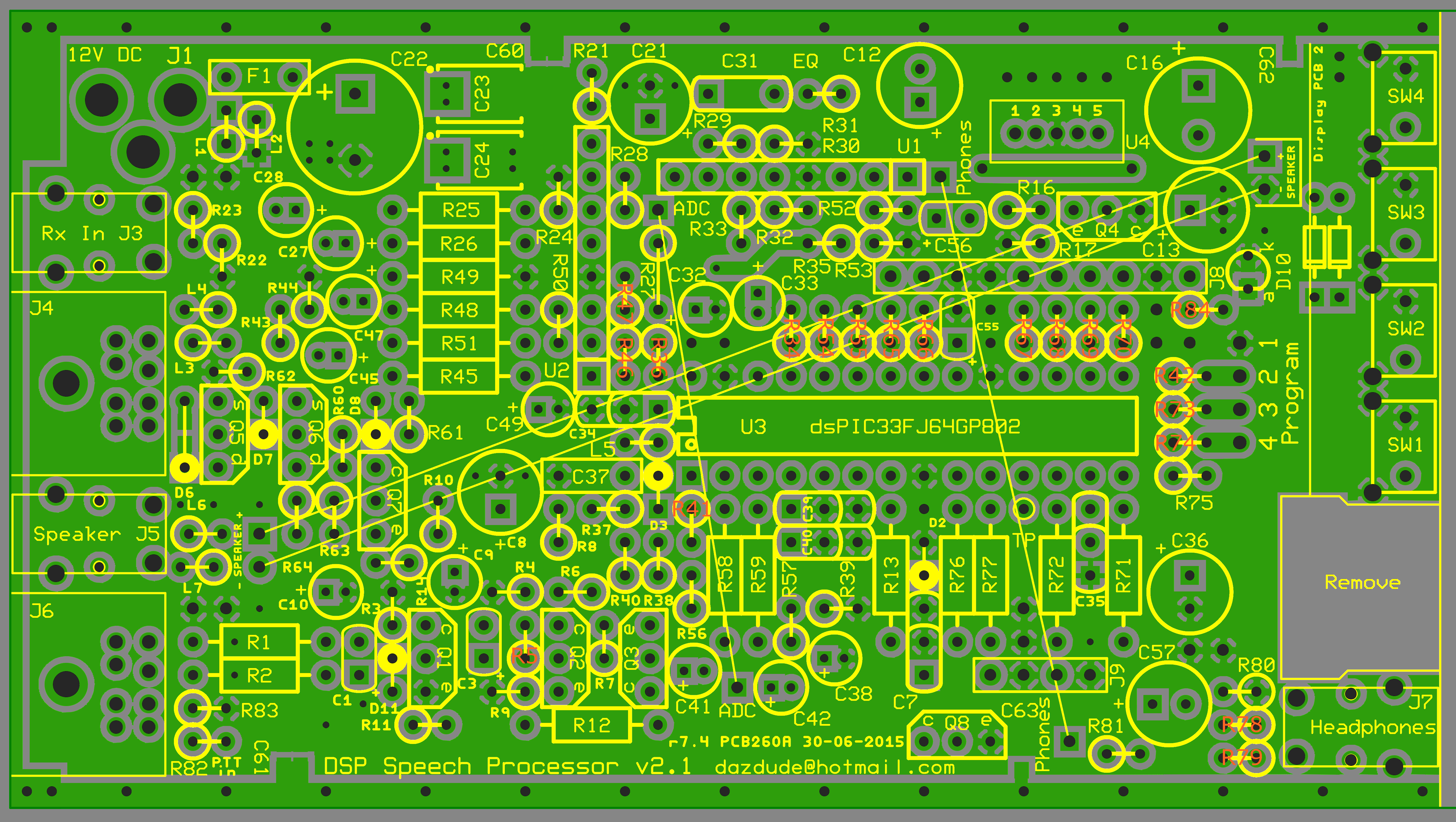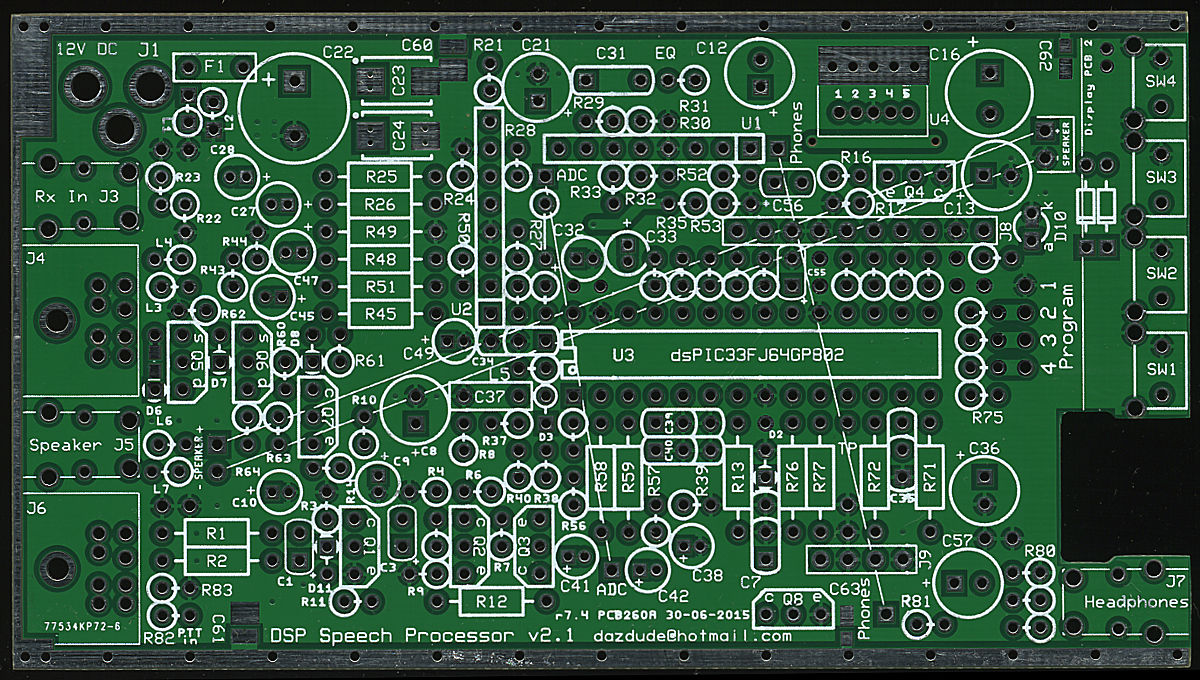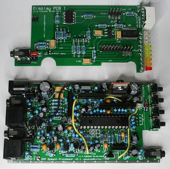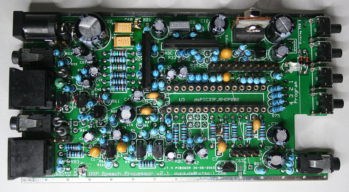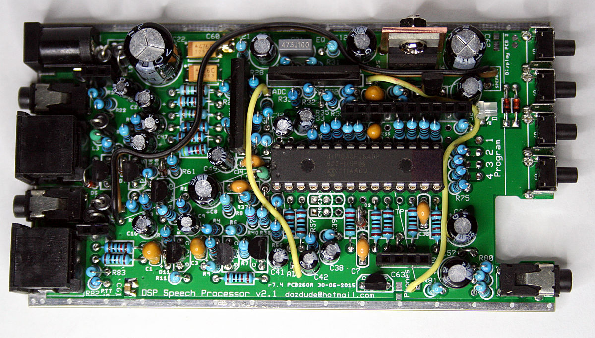 Nov 25, 2016. Video of the DSP Speech Processor v2.1 in action - H.264/MP4 Format. This recording has been lowpass filtered to more closely replicate the sound of passing through transmit filtering. The "r" in receive mode shows Rx volume adjust is selected (- and + buttons change Rx Volume). The default transmit behaviour is to show Tx processing level number (- and + buttons change mode number). The LED "bargraph" is actually configured to show limiting action of each compressor or limiter stage. The LED ordering is: Pre-emphasis limiter, band 1 through band 6, output compressor and Hilbert Clipper stages. Audio was recorded via S/PDIF interface for best quality.