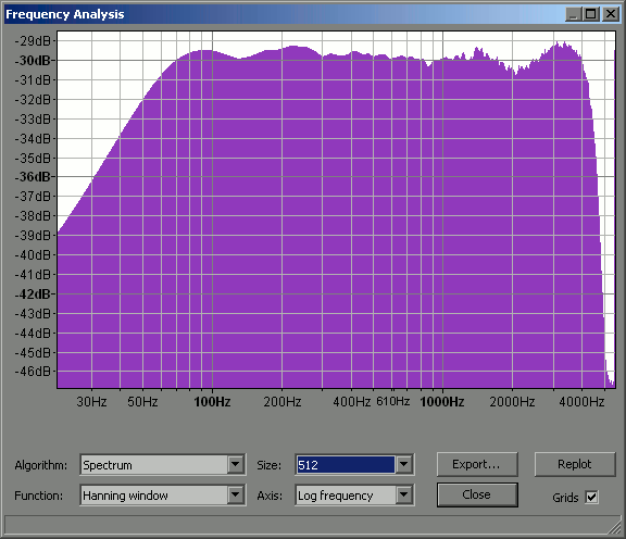 Measured 17/08/2013. Noise level, measured by waveform statistics, S/PDIF output @5.5kHz BW. Mode 0: -84.07dBFS RMS - Electret unplugged, gain at minimum. Mode 0: -72.24dBFS Peak - Mike input shorted. Mode 0: -84.30dBFS RMS - Mike input shorted. Mode 0: -85.39dBFS RMS - ADC input shorted. The microphone amplifier appears to be making a minimal contribution to the input noise. |