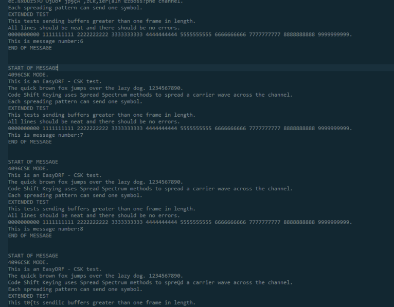 The CSK modem is starting to work. A linear ramp frame sync appears to work very well. At this stage there is no baud sync, but it may not be needed. Currently 256CSK is being tested, but 1024CSK or 2048CSK might be tried next...