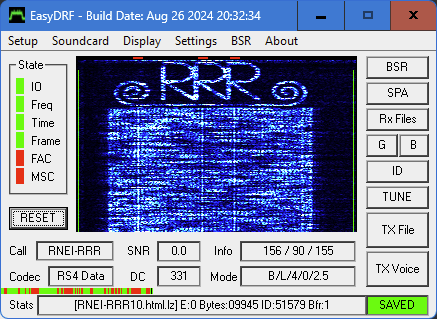 In the HamDRM/EasyDRF protocol, the filename data is sent in the header of segment 0. This is repeated at the end of the file data, in case segment 0 is lost. Since this does not guarantee the filename data will arrive, in EasyDRF the filename data is also sent in a header attached directly to the file. This guarantees delivery, but can't be decoded until there is adequate data present, due to the interleaved RS coding.