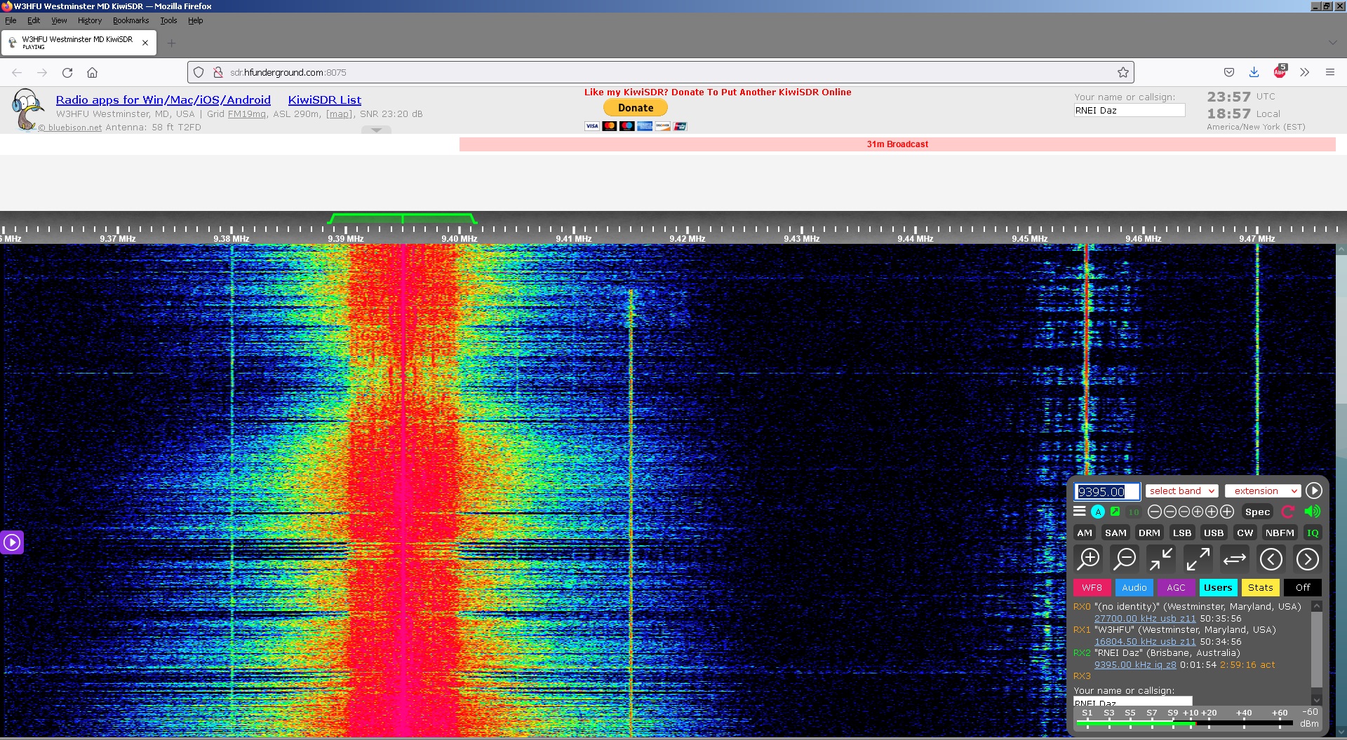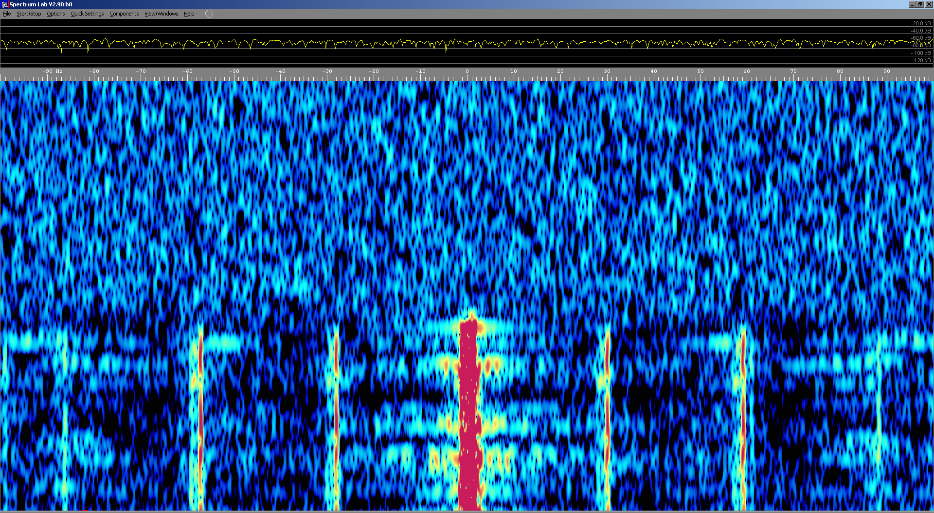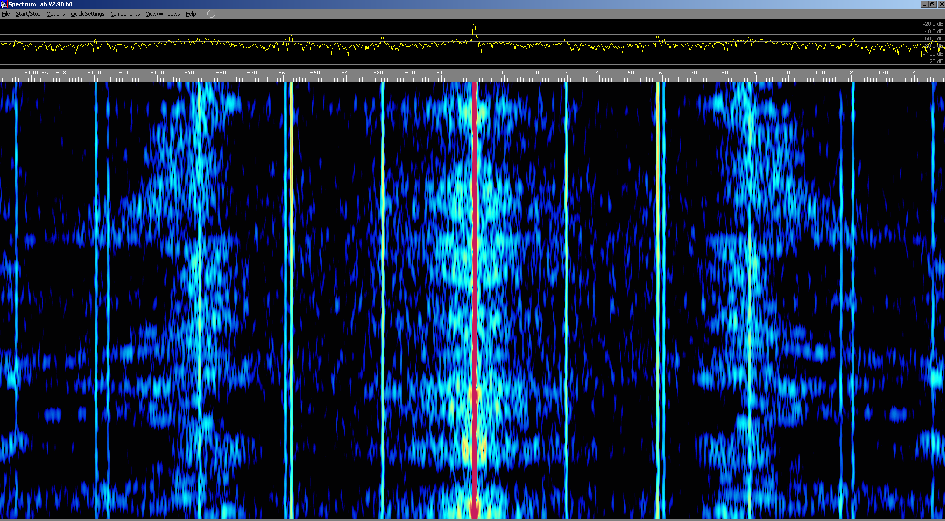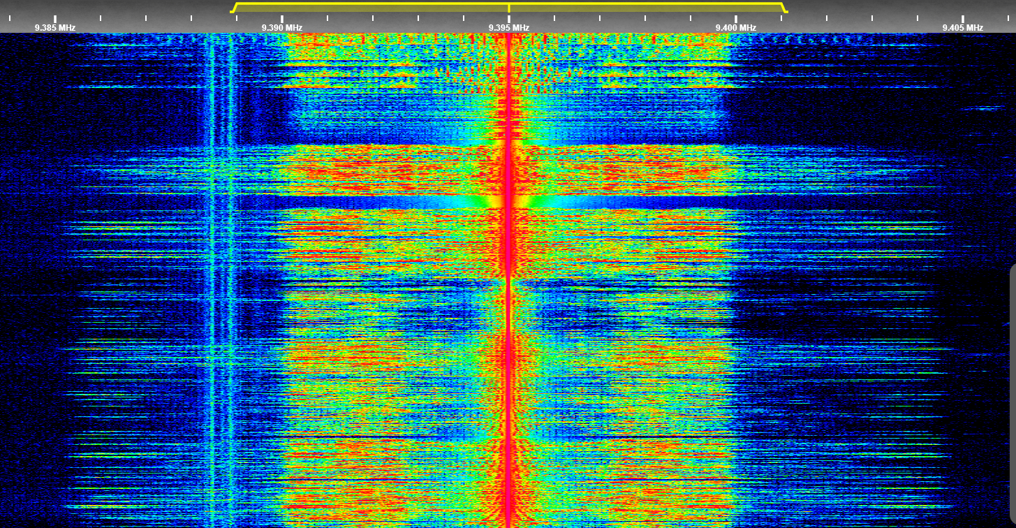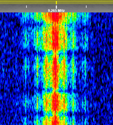 Above: Waterfall spectrum of 9955kHz showing 29Hz and 58Hz spectral lines