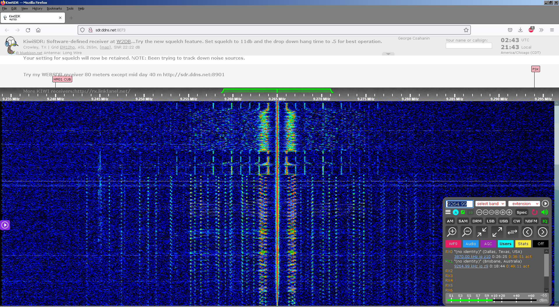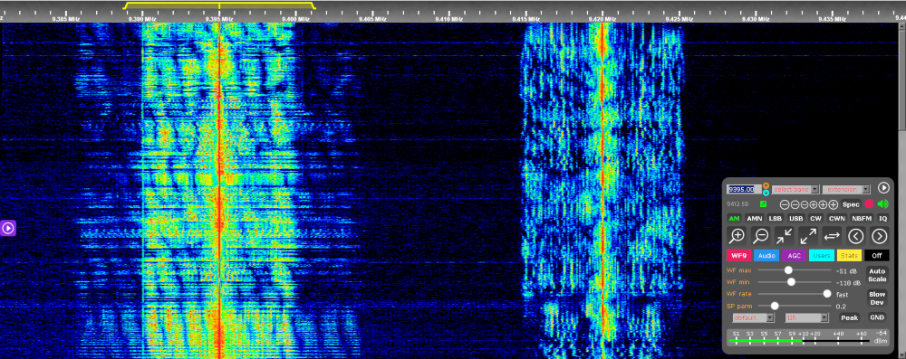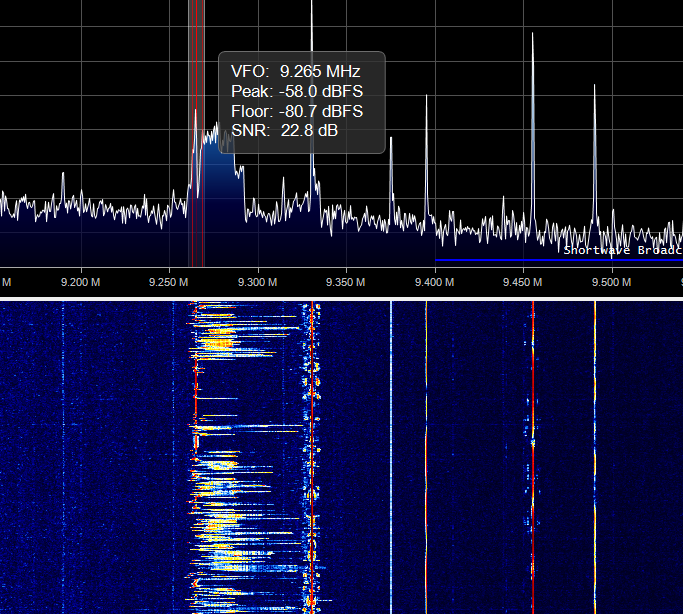 Above: Sep 24, 2022. The WINB 9265 kHz transmitter jumping off-frequency by at least 50kHz.