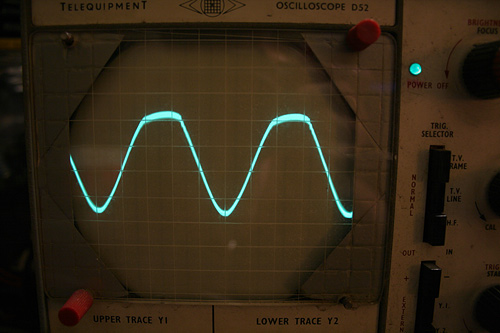 - showing rectified mains waveform