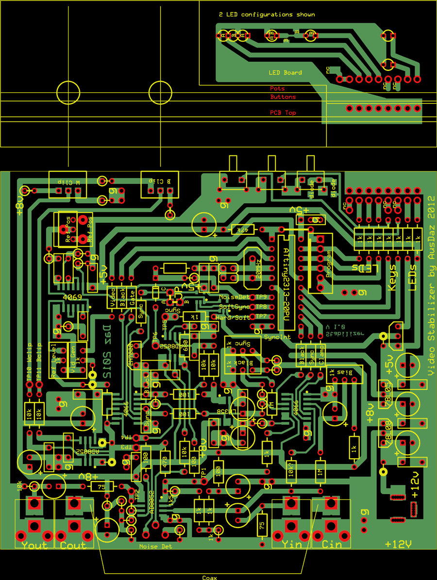 Typical VCRs use a method of timing the headswitching point that relies on a phasing signal from the video head drum. Since PAL video has 625 lines per revolution of the video heads, this equates to a tiny 0.576 degrees of head rotation per video line. Since this is a tiny angle, timing errors are likely. Therefore, the switching point is bound to be unstable unless it can be locked to the video sync as a reference. A microcontroller on a small PCB could be added to the VCR circuitry to fix this problem automatically. An ATtiny2313 microcontroller, running at 20MHz
